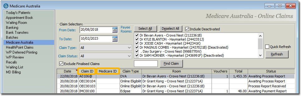 - The Medicare Australia window now includes a Medicare ID column.Medicare IDs differ from the local Claim IDs stored in Bluechip: