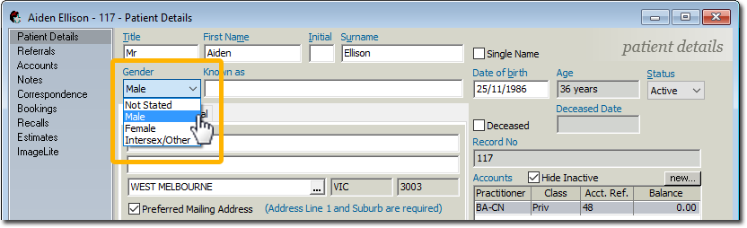 - There are now 4 options for recording a patient's Gender: