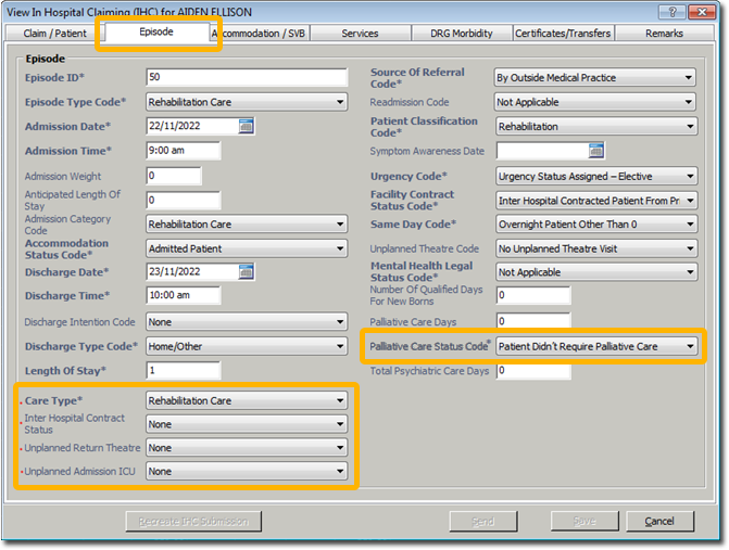 - The In Hospital Claiming (IHC) request screen has new fields: