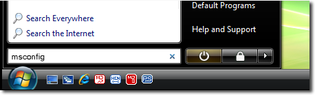 Within the Search text box type MSCONFIG.