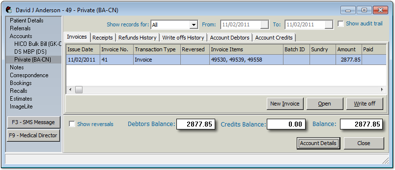 Once you have created an account for a patient, it is possible to print labels for the account. Account labels are class-specific, and contain details that pertain to the patient, the referring practitioner, and that are specific to the account, such as Health Fund, Health Fund No, Claim No, Injury Date, Pension No, and so on.