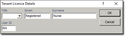 Edit With the tenant selected allows the name and logon initials to be changed. With a practitioner selected allows the name, logon initials, provider numbers and number of rooms to be added to or changed.