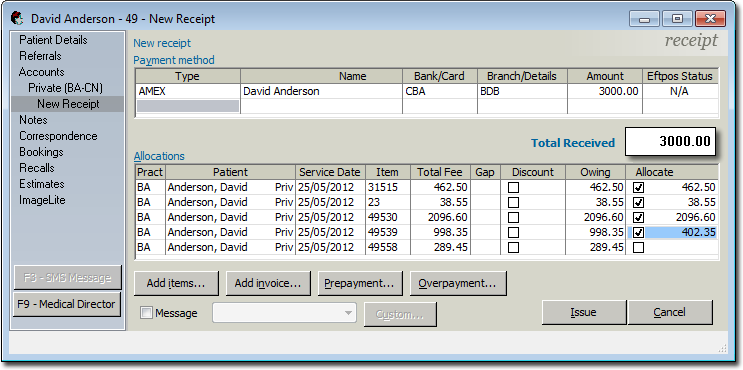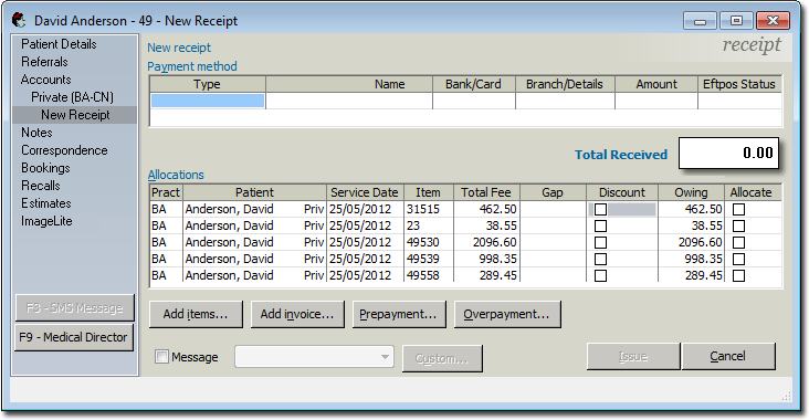Part payments can be made at the time of consultation (Combined Invoice/Receipt) or as payment of pre-issued invoice.