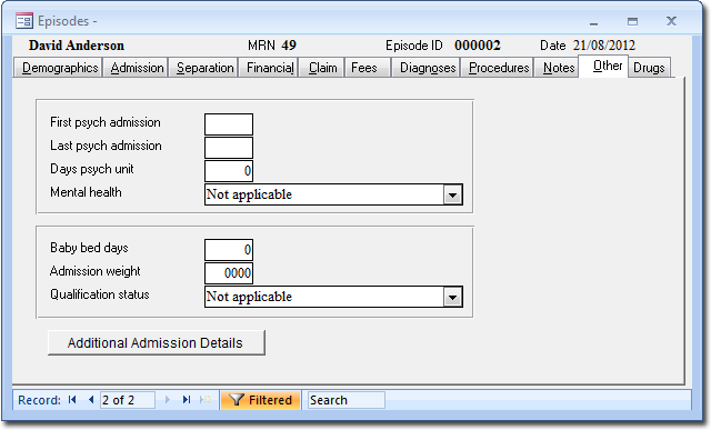The Other tab is applicable for the Victorian version of Day Surgery as part of their reporting process.