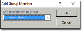 Select a practitioner to add to your Appointment Group from the list provided. Only