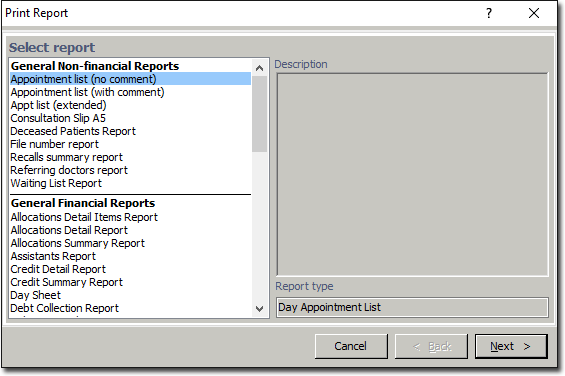 It does not include the comments that are attached to these appointments, and is therefore a shorter report than the Appointment list (with comment).
