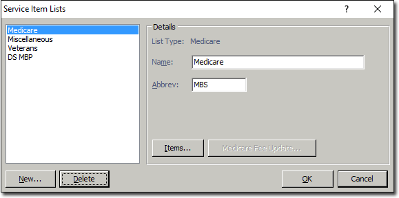 Items. The Service Items window