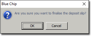You will be prompted to confirm that you want to finalise the deposit slip. Click OK. to confirm.