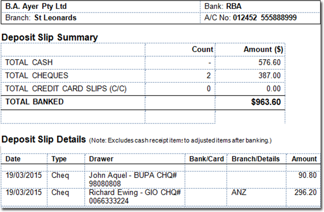 - Draft: Allows you to print a draft copy of the deposit slip prior to finalising the deposit,