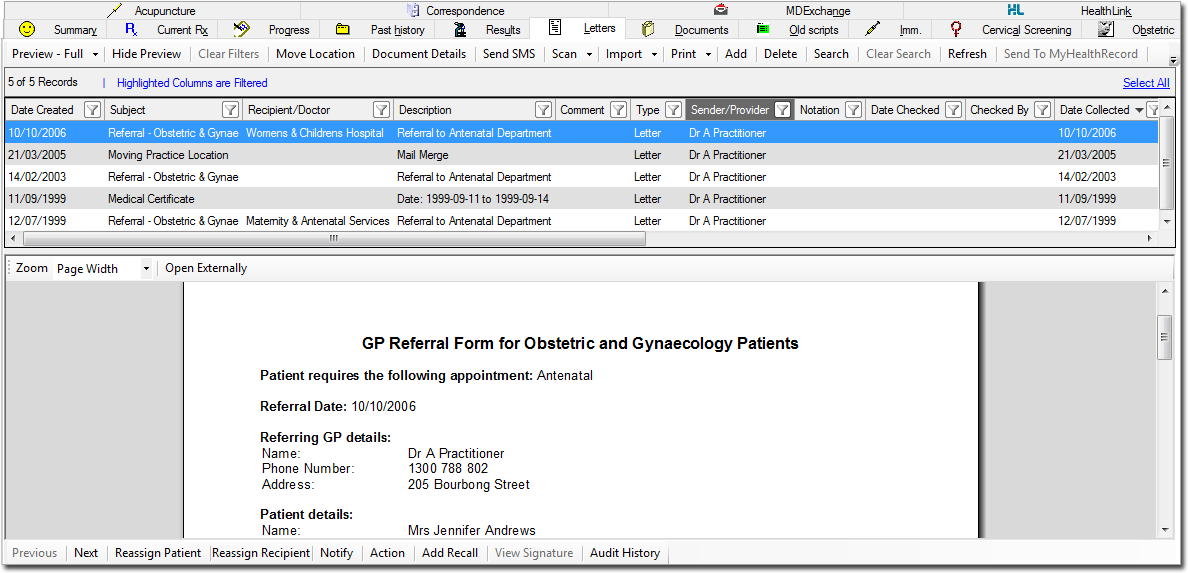 From Bluechip 2.5, when you save a letter in Bluechip, a copy is stored within the patient's record in Clinical.