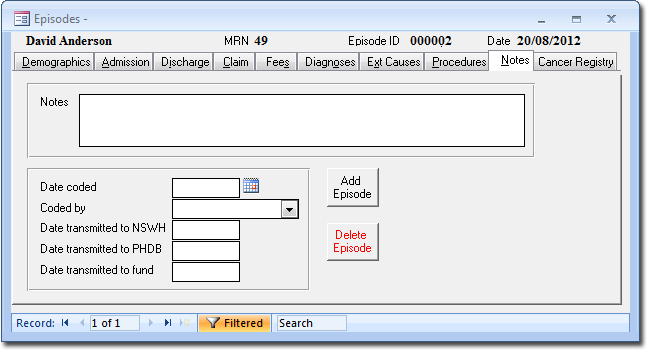 1. Enter any notes regarding the procedure. An example of a particular note maybe why a procedure did not proceed when the patient was admitted. This should be worded by the clinical coder.