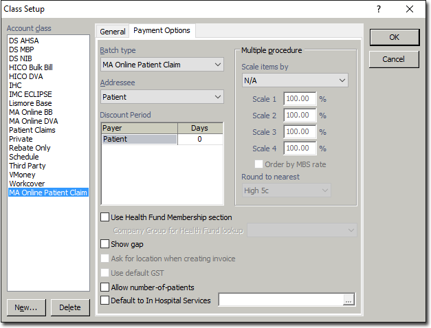 - Within the Account Class list, select the MA Online Patient Claim class, so that it can be configured for batching.
