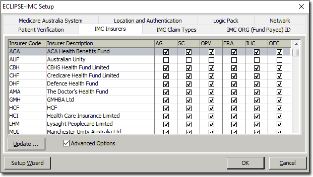 Click Update to update the supplied list of IMC Insurers.