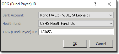- Select a Bank Account / Health Fund combination you want to record an ORG (Fund Payee) ID for.