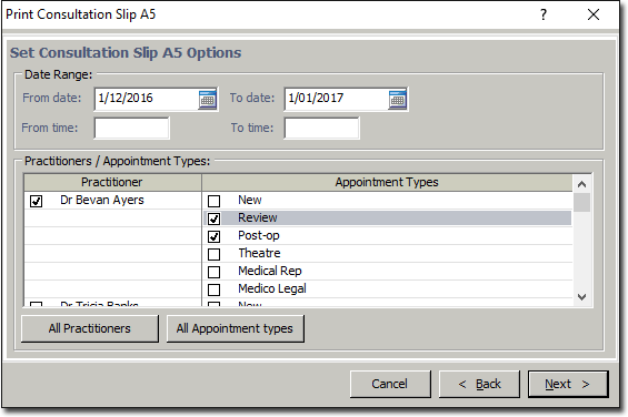 In the Print Consultation Slip A5 Report window, enter a