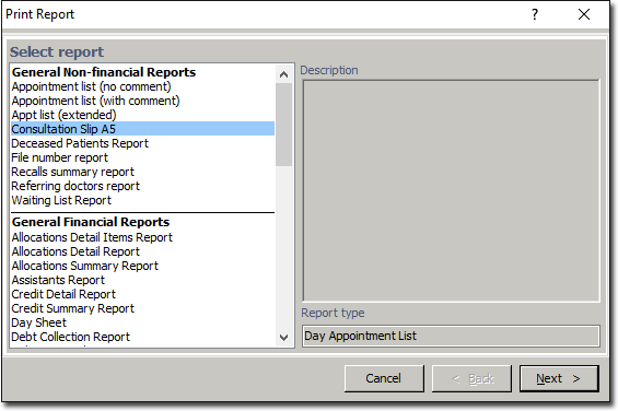 In the Print Report window, select Consultation