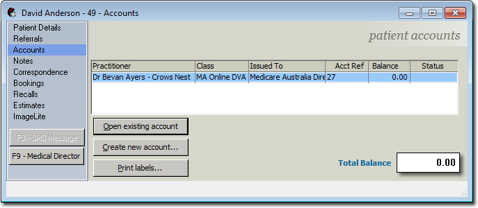 - Within the list of accounts, locate and double-click the MA Online DVA account. The details of the MA Online DVA account are presented to you.