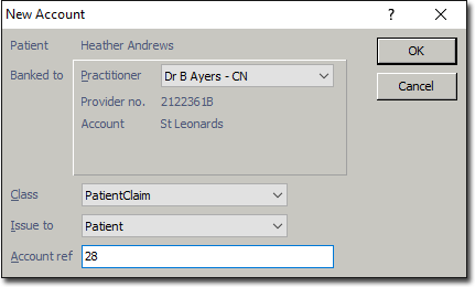 In the New Account window, select the patient's practitioner