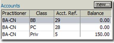 Open a patient's record and locate the Accounts