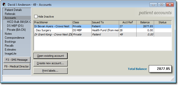 From within the Patient Explorer, select Accounts from the Margin menu.