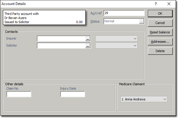 - From the Practitioner drop-down list select the Practitioner that the new account will be banked to. The Provider Number and Account for the selected Practitioner will be displayed automatically displayed.