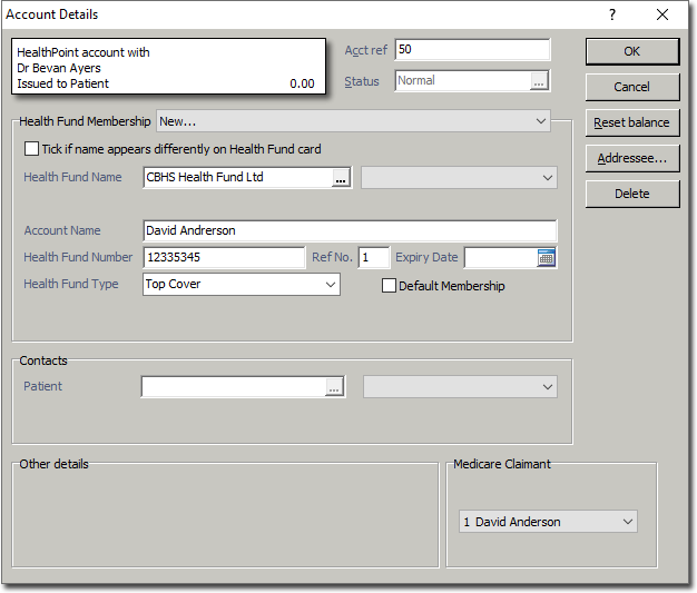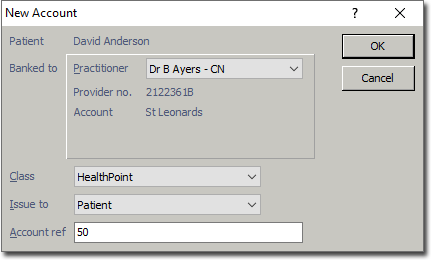 You will be returned to the patient's record, where you can now see the new account