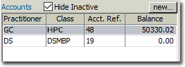 Open a patient's record and locate the Accounts section.