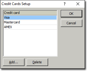 Select . The Credit Cards Setup window appears.