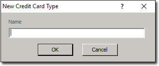 The New Credit Card Type window appears. Enter a new credit card and then click OK. to save it.