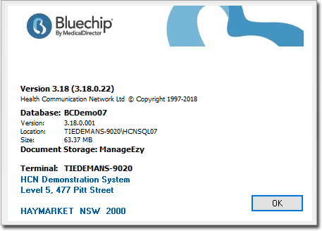If you are using Bluchip 3.18 you can easily determine which document management system you currently use (ManageEzy or ImageLite), by selecting, Help > About from within Bluechip.