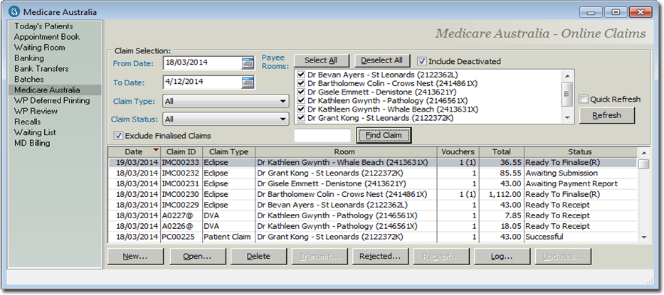 To access it, click the Practice Explorer button at the lower-right side of the screen, and then from the margin menu select Medicare Australia. These claims are unprocessed and ready to action or troubleshoot depending on the status.