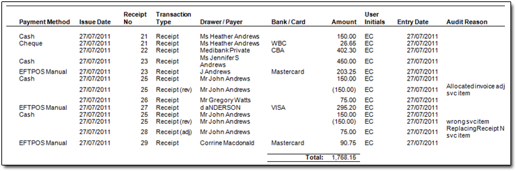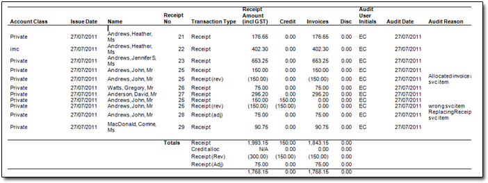 MedicalDirector recommends the following reports to be printed at the end of each day to ensure that any discrepancies if they do arise can easily be identified and rectified.