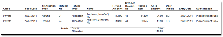 Day Sheet - This is a transactional report that can be printed for (a) specific practitioner(s) and displays all transactions processed on the day. The report can display transactions based upon either entry date or issue date.