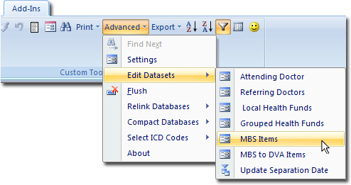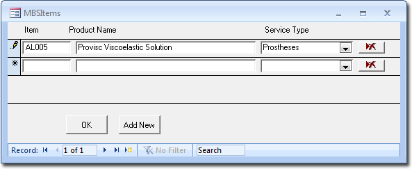 Enter the Item number. This should correspond to the item number entered into Bluechip. If defining the non-MBS item in Day Surgery for the first time, the entry point is the solid black triangle. If adding to this list, the insertion point is marked with an asterisk and when working on the entry, the icon changes to a pencil.