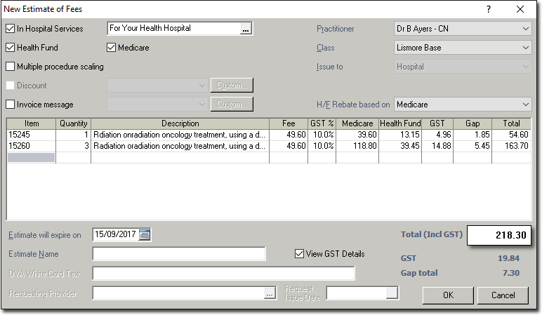 - The Quantity column will appear in the Estimates screen. This will only be available for User-defined Fee List Service items that have been enabled for Quantity.