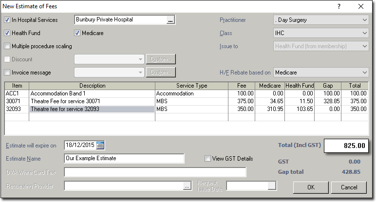 - As this is an estimate for In Hospital Claiming, you must select the hospital