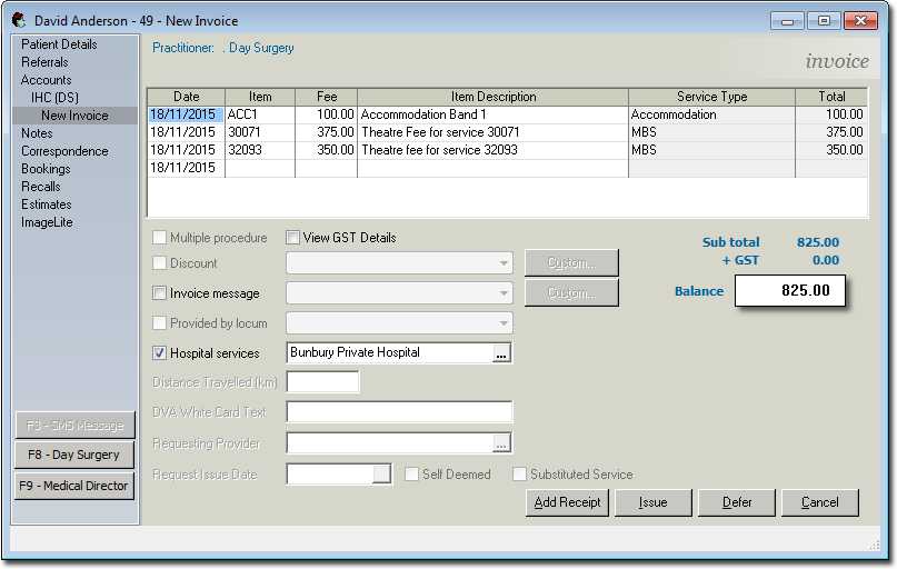 - Ensure the Practitioner e.g. "Day Surgery" is