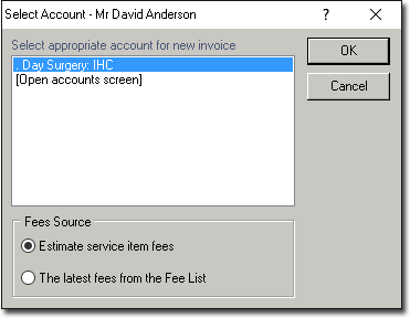 window will appear, prompting you to select an account to create the invoice