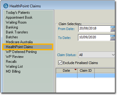 Locate and select the HealthPoint Claims section.