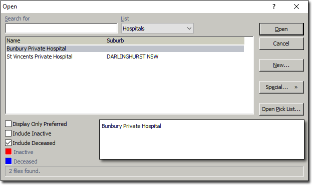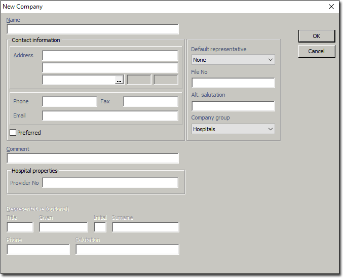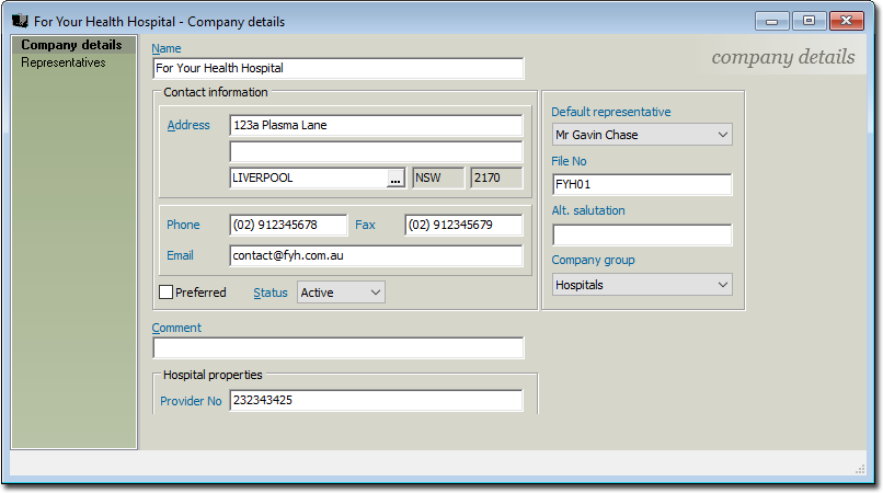 appears. As a Hospital is considered a subset of 'Companies', a similar window for
