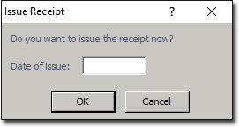 to issue the receipt. You will be prompted to indicate the date of issue. The default date is the current date. Modify if required.