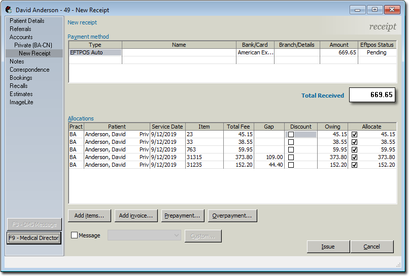 If you re-receipt the patient without checking this, you may find you have to do a refund to reimburse patients for overpayment, as duplicate transactions will appear in the EFTPOS Device but not on the Practice Management System.