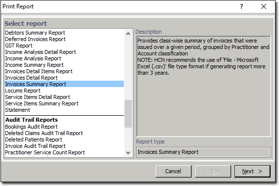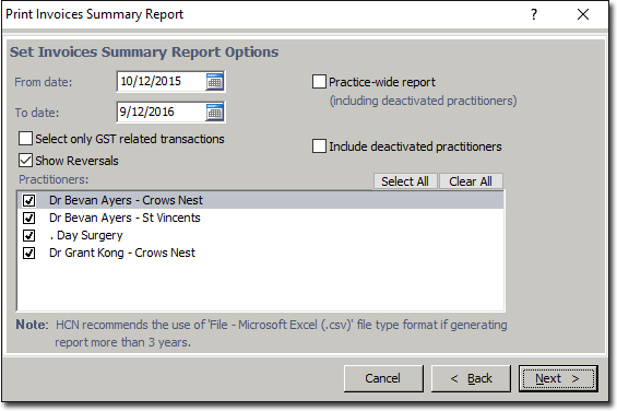 The Invoices Summary Report provides a class-based summary of invoices that were issued over a given period grouped by Practitioner and Account classification.