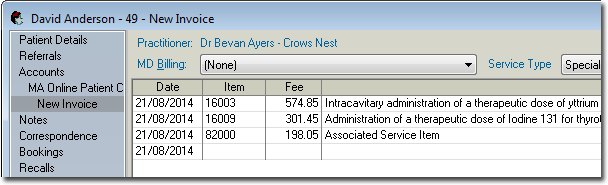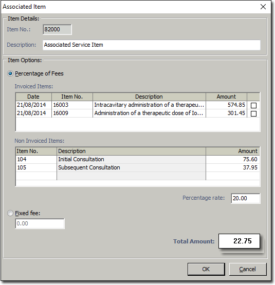 - Via the Non Invoiced Items section, insert any Service Items you want to base your percentage calculation on.