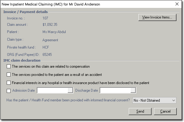 Indicate that the patient / Health Fund member has been provided with informed financial consent via the associated drop-down list. Consent is required for successful IMC processing via ECLIPSE.