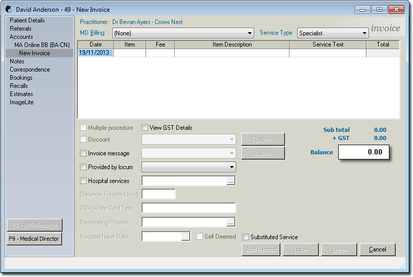 - You will be prompted to print a Medicare DB4 form, for presenting to the patient to sign, after which the Invoice is issued to Medicare, and is waiting on processing.