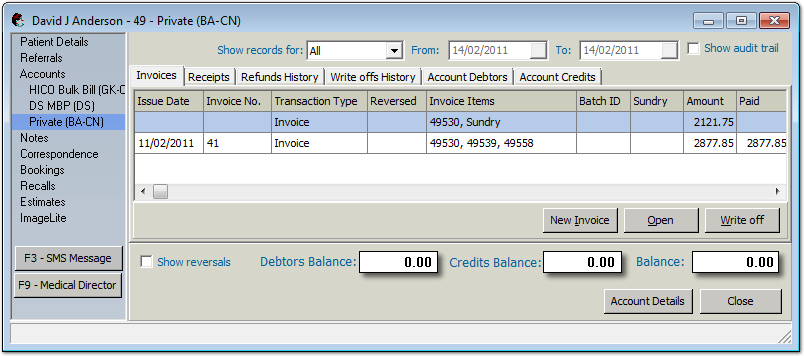You will then be returned to the Invoices tab for the selected account. Notice in the example below, the invoice has been paid in full.