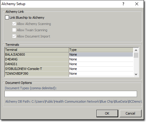 - Tick the Link Bluechip to Alchemy check box to link to Alchemy.