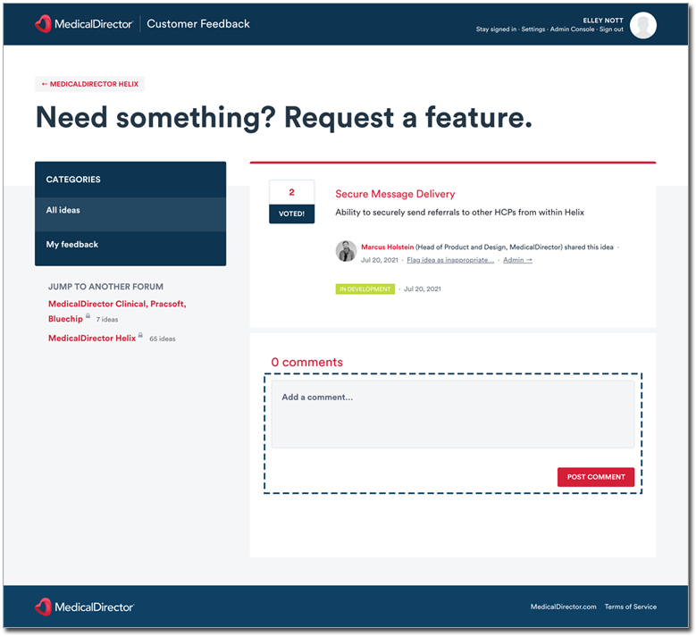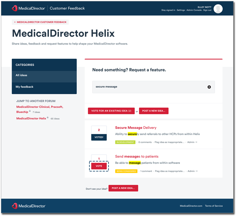 The MedicalDirector Customer Feedback Platform is a place to request features and share ideas to help shape your MedicalDirector software.