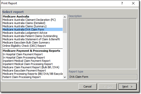 The report is printed automatically when a DVA claim is submitted to the Medicare.
